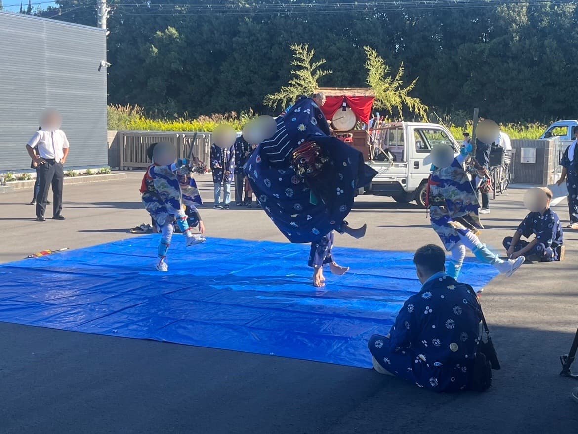 秋祭りで獅子舞いが工場に来ました^^