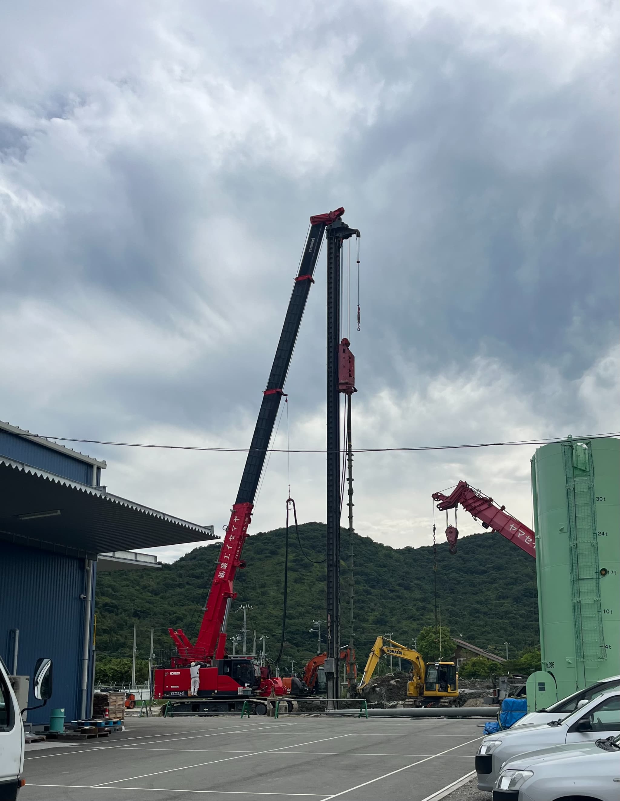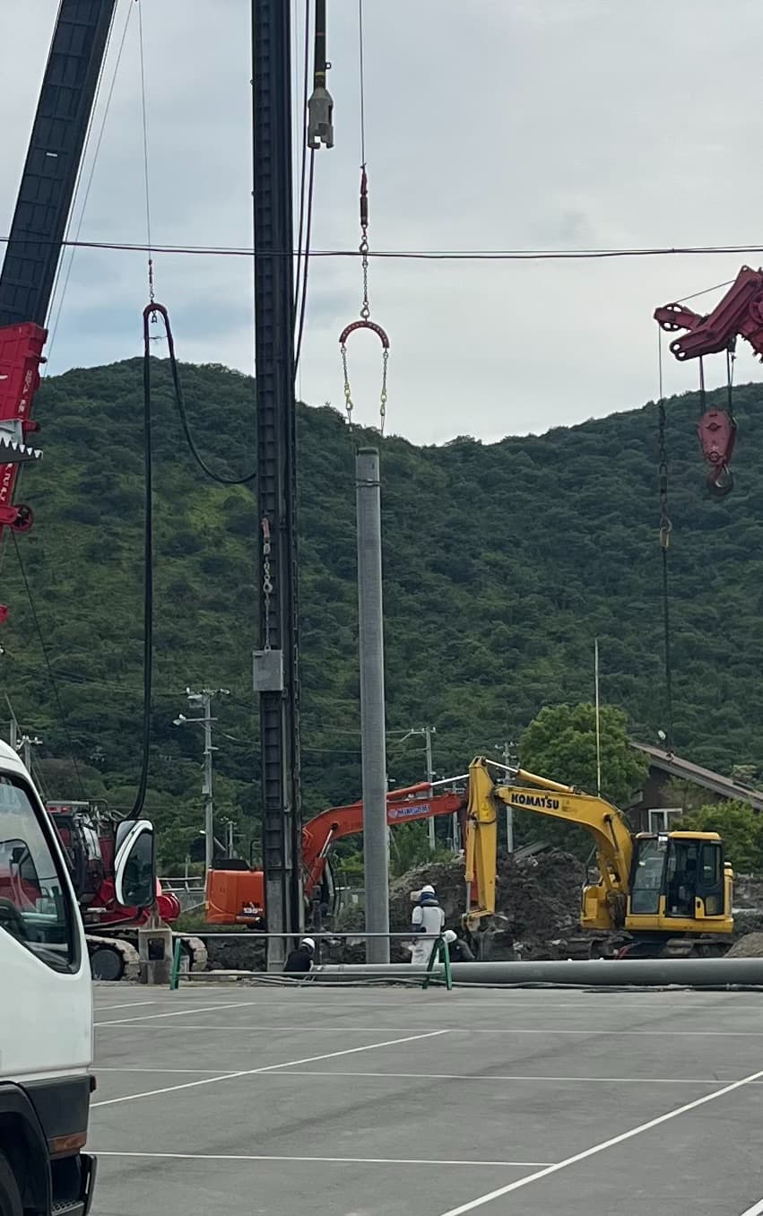 建設の進捗ですが、柱を地中に埋める作業が完了しました!!